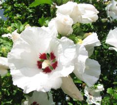 Charakteristika: Ibištek sýrsky ´RED HEART´ kvitne nepretržite veľkými kvetmi bielej farby s výrazným červeno ružovým stredom. V strede kvetu rastie dlhá krémová tyčinka. Okraje bielych lupeňov sú mierne zvlnené. Kvitne od augusta do októbra. Listy sú sýtej zelenej farby, majú pílkovitý okraj. Ibištek zapestovaný na kmienku je dokonalou solitérnou rastlinou, ale môže sa využívať aj v skupinovej výsadbe.