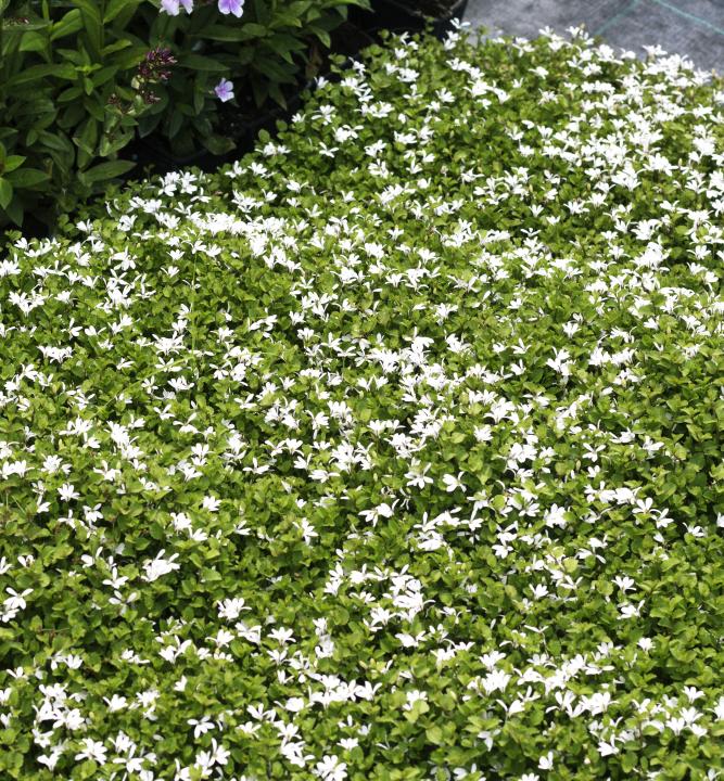 Pôdopokryvná trvalka s množstvom bielych kvetov vhodná aj k okoliu jazierok.