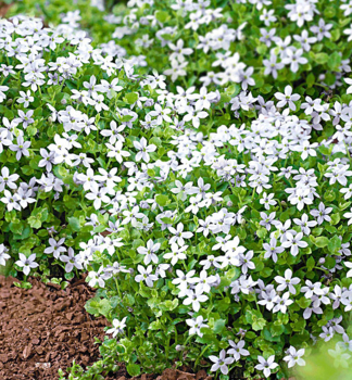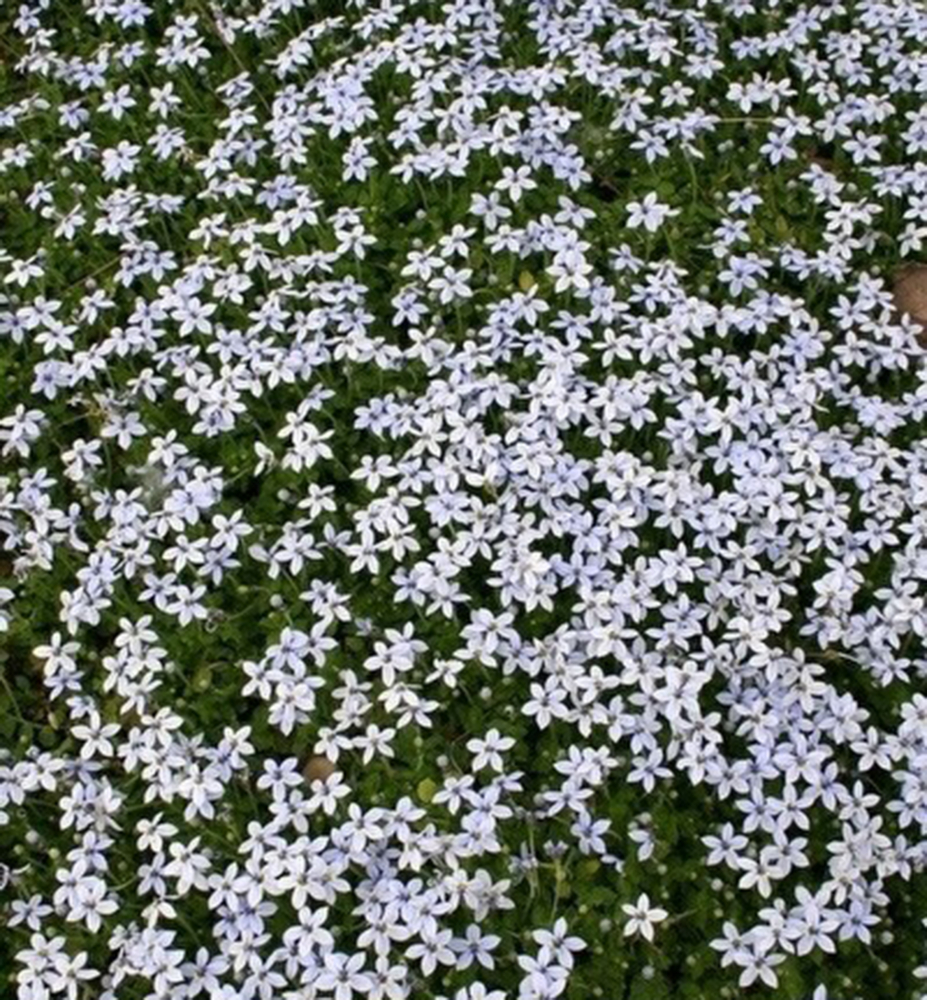 Rýchlo rastúca pôdopokryná trvalka s množstvom modrých kvetov.