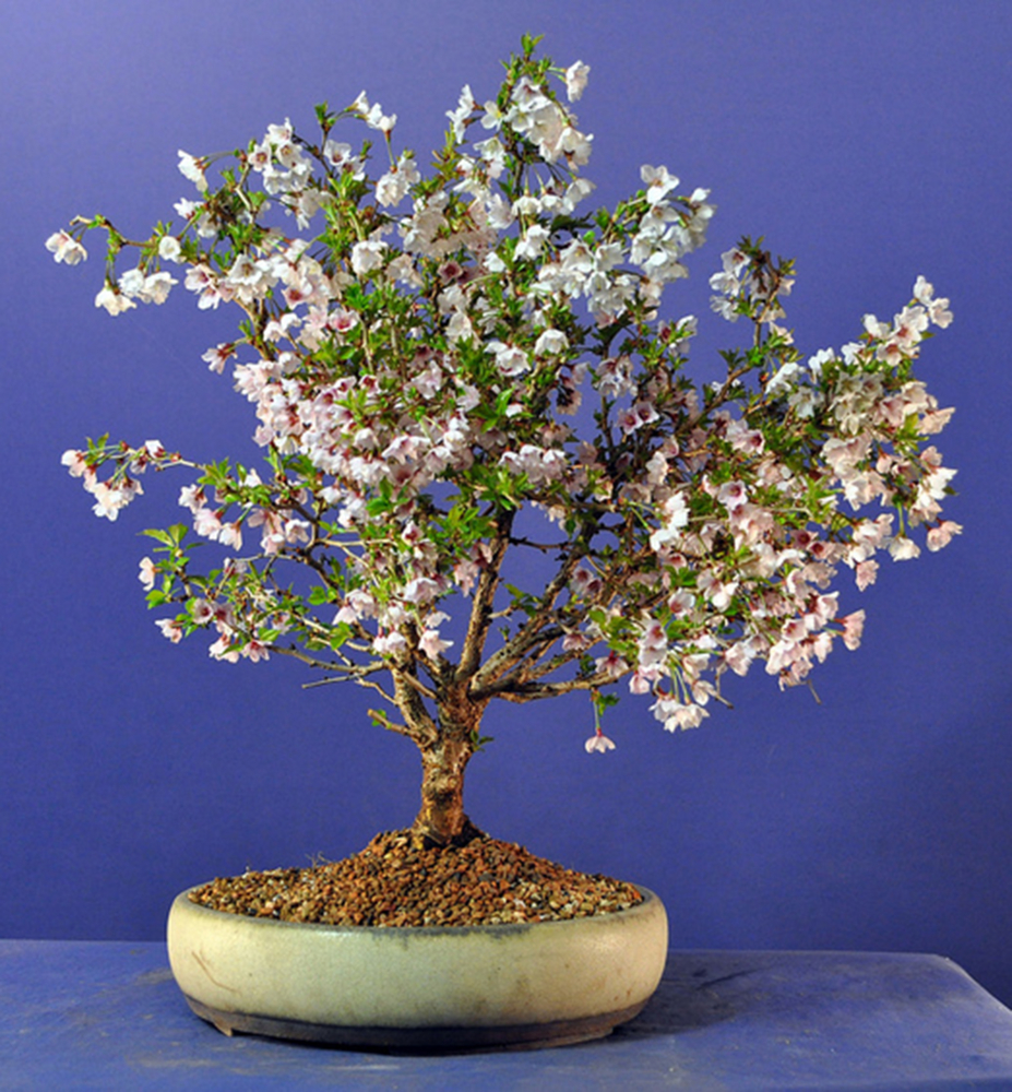 Žiadaná previsnutá okrasná višňa (Sakura) so svetloružovými kvetmi.
