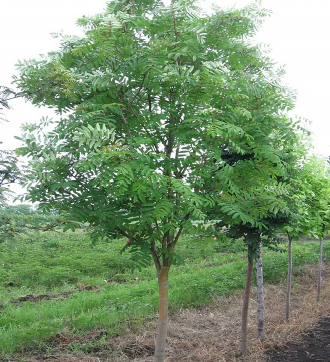 Atraktívny vysoký strom s jedlými sýtočervenými plodmi.