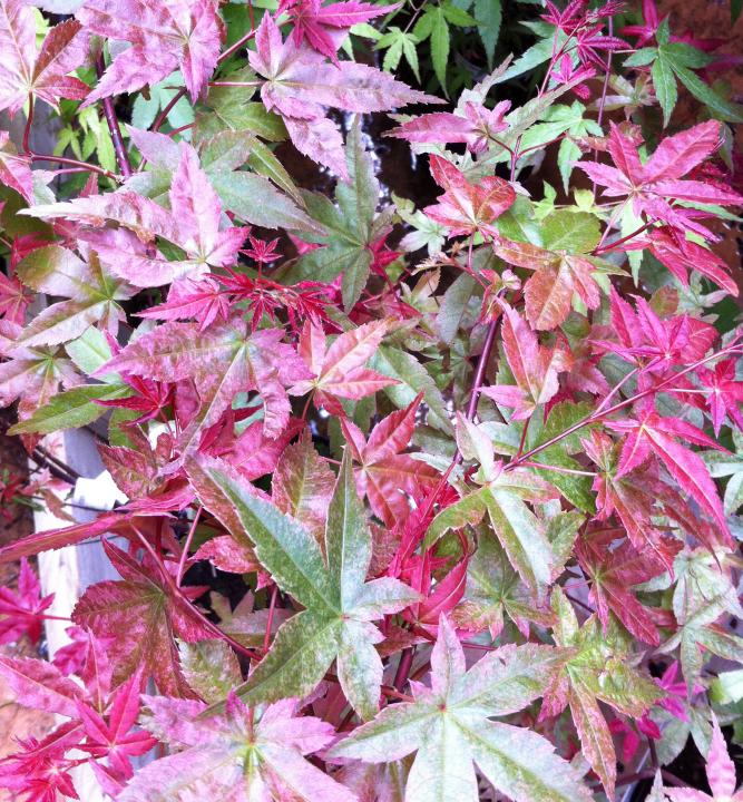 Trojfarebný japonský javor s pestrými listami jemnými ako motýlie krídla.