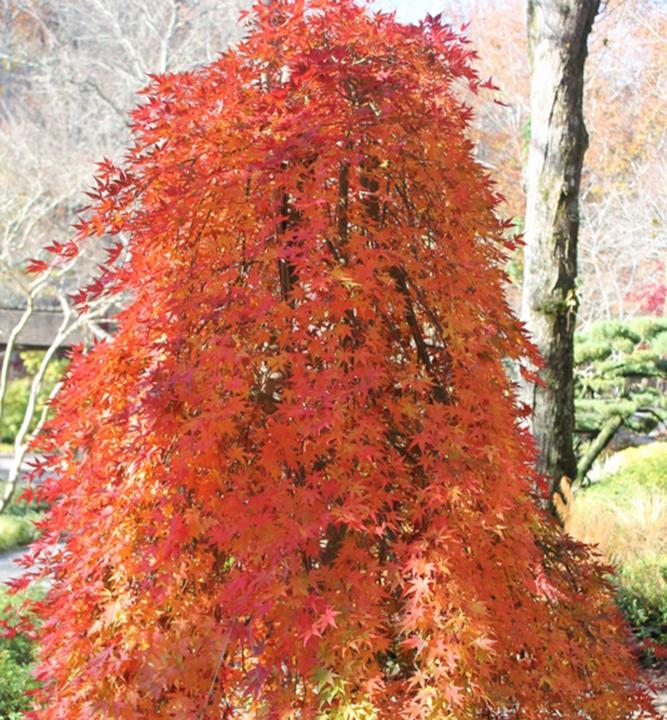 Vyhľadávaný trpasličí javor s menšími gaštanovočervenými listami.