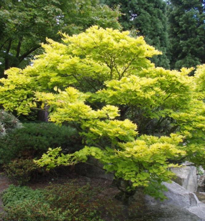 Jeden z najkrajších solitérov s atraktívnym žltozeleným olistením.
