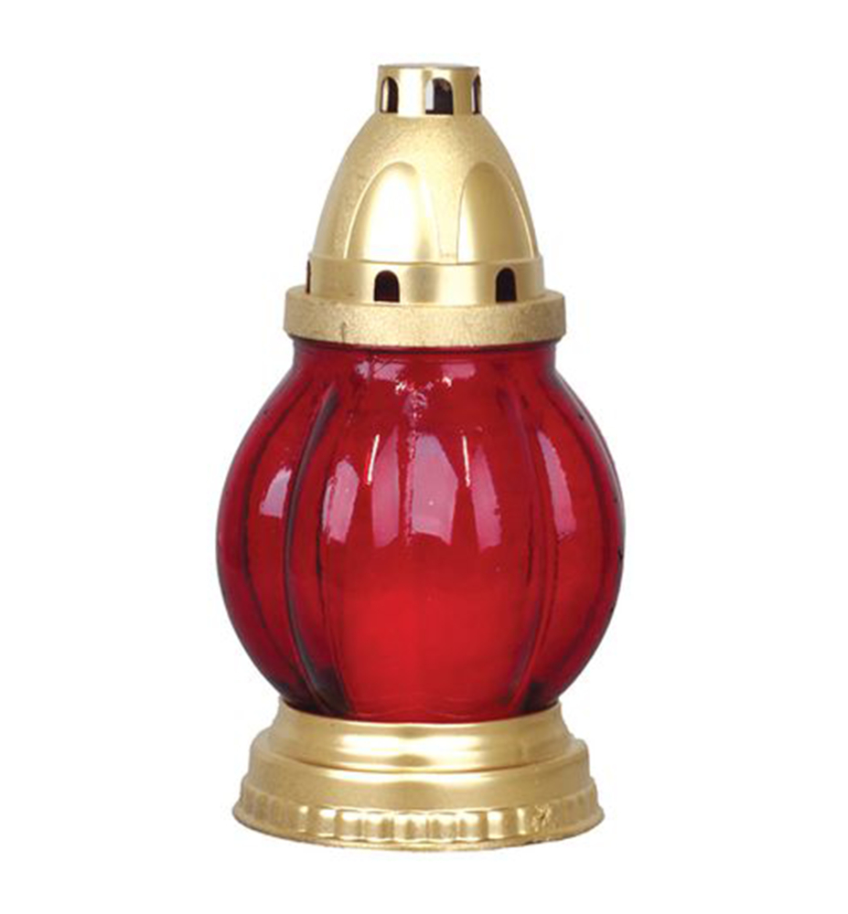 Charakteristika: Klasický kahanec na hrob z červeného skla a s elegantnou čiapkou doladí hrob Vašich blízkych. Je vhodný aj na využitie pri dodekorovaní smútočných vencov a ikebán. Kahanec obsahuje náplň s dobou horenia 18 hod.