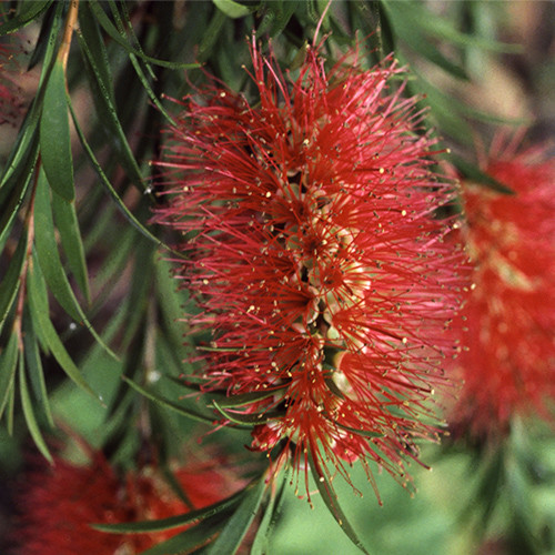 Nápadná stálezelená kordylína s úzkymi olivovozelenými listami s červeným stredom