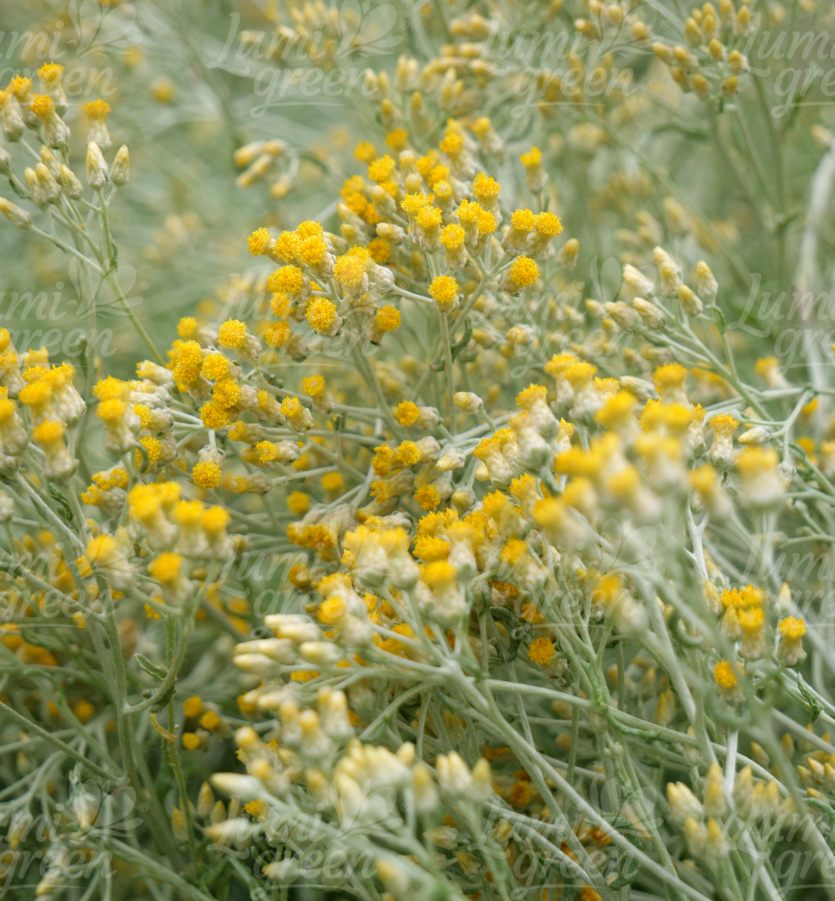 Charakteristika: Žlté kvety kari korenia ´DWARF CURRY´ sa objavujú začiatkom jesene. Obľubuje slnečné, suché a chránené miesta. V zime je vhodné ju zakryť. Slamiha vynikne v štrkových záhonoch aj v nádobách. Z rastliny sa využívajú striebristé ihlicovité listy dlhé asi 3 cm – čerstvé aj sušené. Pridáva sa do polievok, k dusenému mäsu a do ryžových jedál. Sušená kytička chráni šatstvo pred moľami.