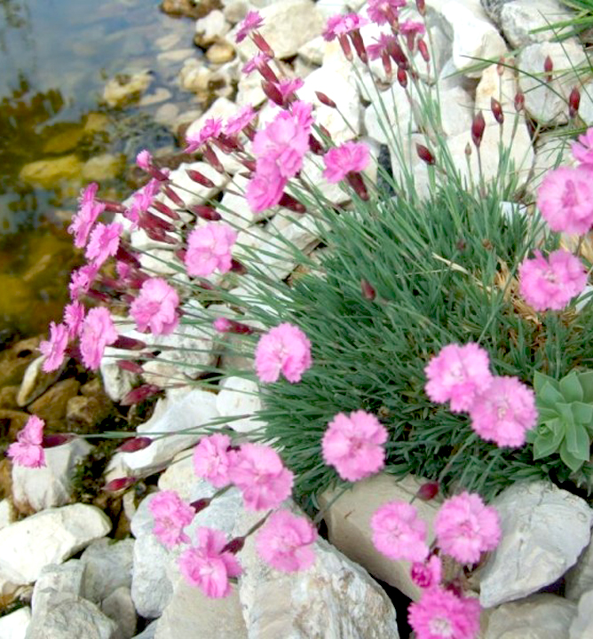 Charakteristika: Klinček sivý ´Pink Jewel´ vytvára kompaktné vankúše striebristo-zelených listov, ktoré sú v čase kvitnutia obsypané výraznými ružovými kvetmi. Kvitne od mája do júla.