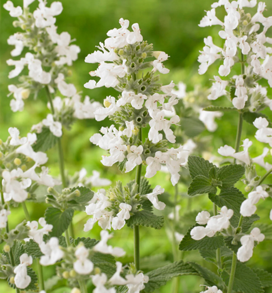 Aromatický kocúrnik so šedozelenými listami a s netradičnými bielymi kvetmi.