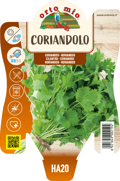Charakteristika: Koriander pôvodne pochádza z východného Stredomoria a západnej Ázie. Je to cca 50 cm vysoká rastlina, listy sú podobné petržlenu a majú silnú arómu. Z rastliny sa využívajú vňať i suché plody. Plody sú hnedej farby a majú príjemne aromatickú, nasladlú, jemne pikantnú chuť.