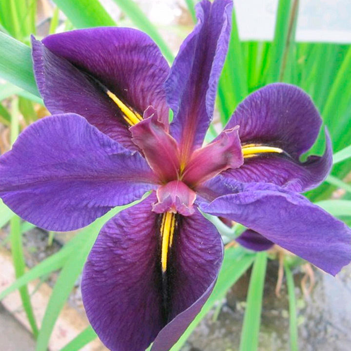 Japonský kosatec s elegantnými sploštenými kvetmi snehovobielej farby.