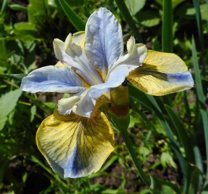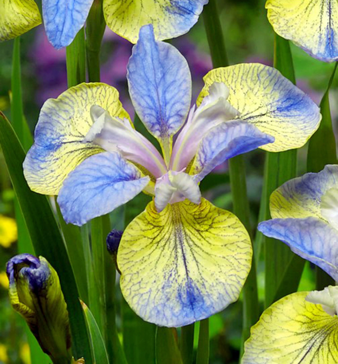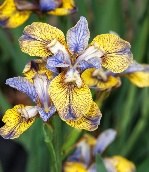 Atraktívny dvajbarebný kosatec spájajúci kontrastú žltú a modrý farbu.