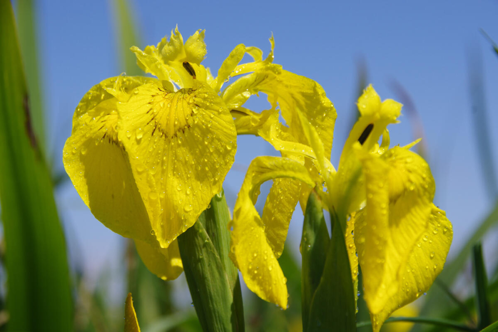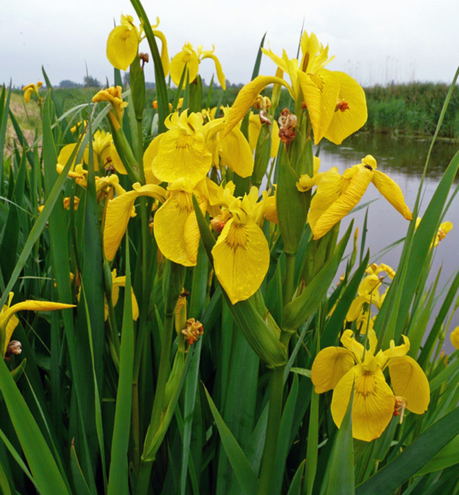 Atraktívny vlhkomilný kosatec so žiarivými žltými kvetmi, vhodný na okraje jazierok.