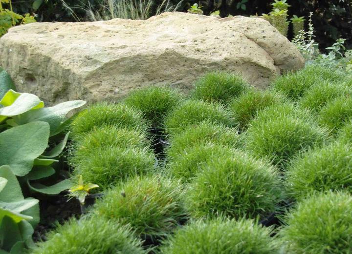 Nižšia okrasná tráva vytvárajúca kompaktný tmavozelený trs.