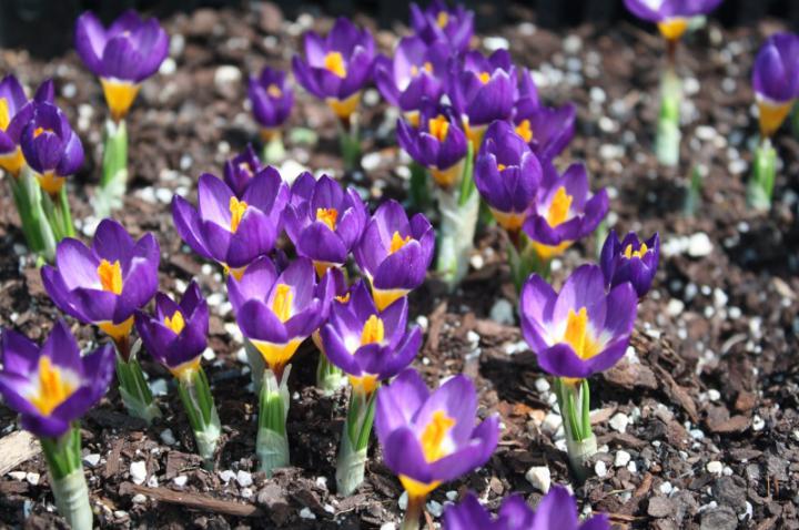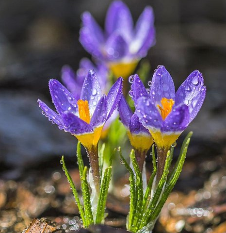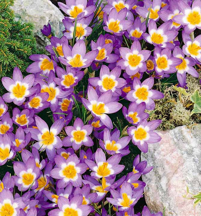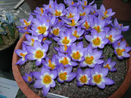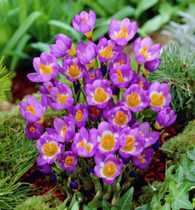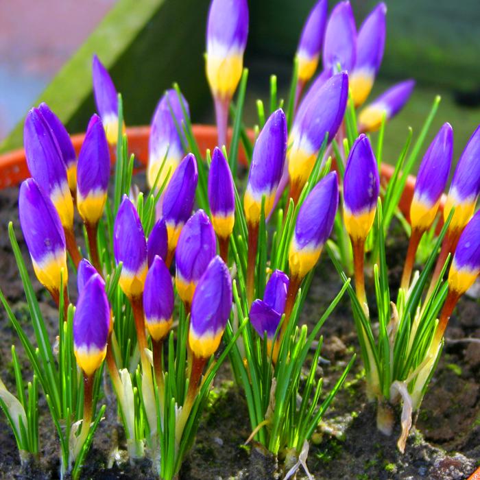 Voňavý, veľkokvetý krokus s neprehliadnuteľnými trojfarebnými kvetmi.
