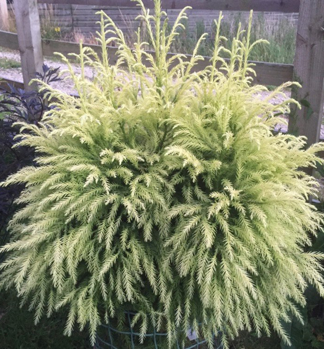 Stredne rýchlo rastúci ihličnan s atraktívnym krémovozlatým sfarbením.
