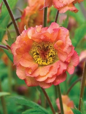 NOVÁ bohato kvitnúca trsovitá trvalka s pastelovými marhuľovo-lososovými kvetmi.