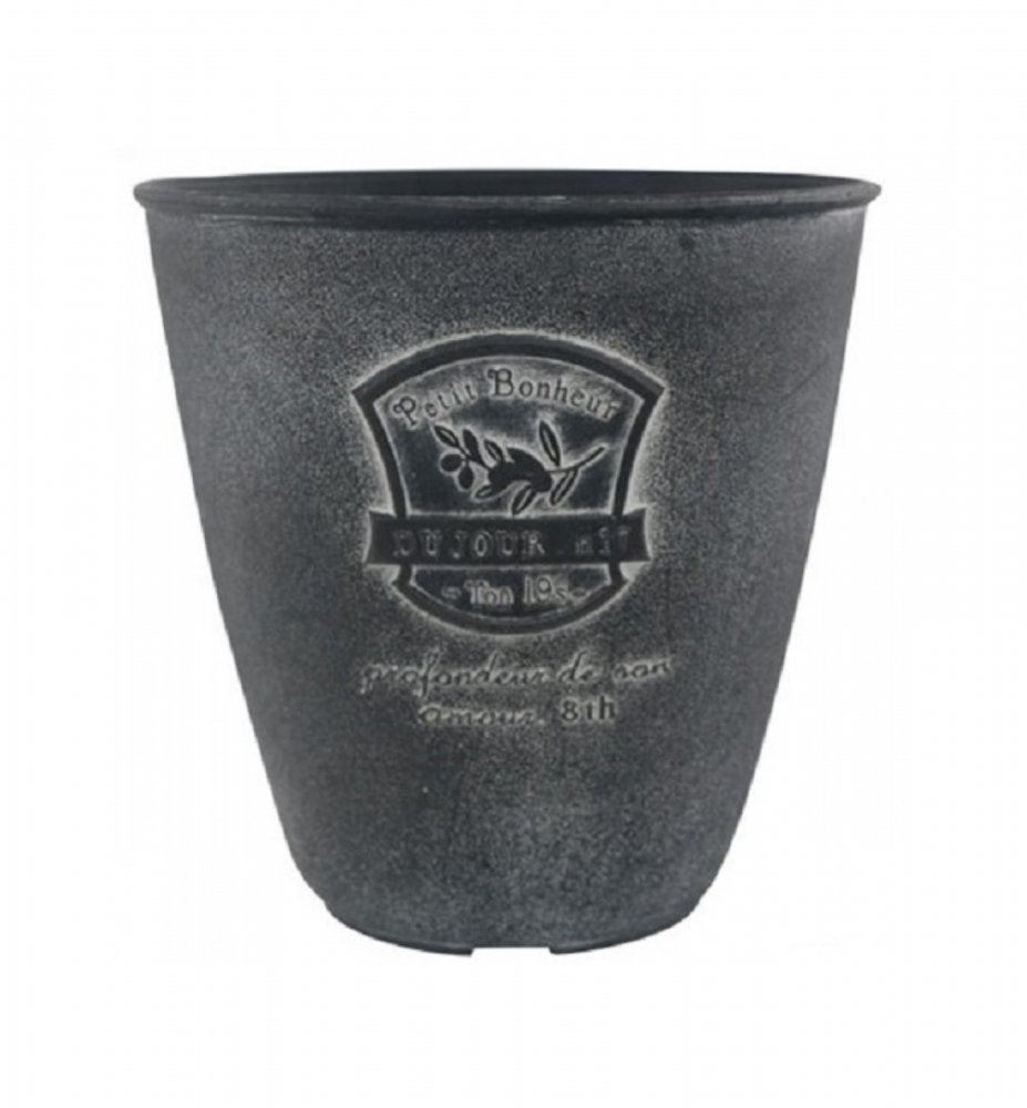 Štýlový plastový kvetináč s jedinečným zrnitým efektom vhodný do interiéru.
