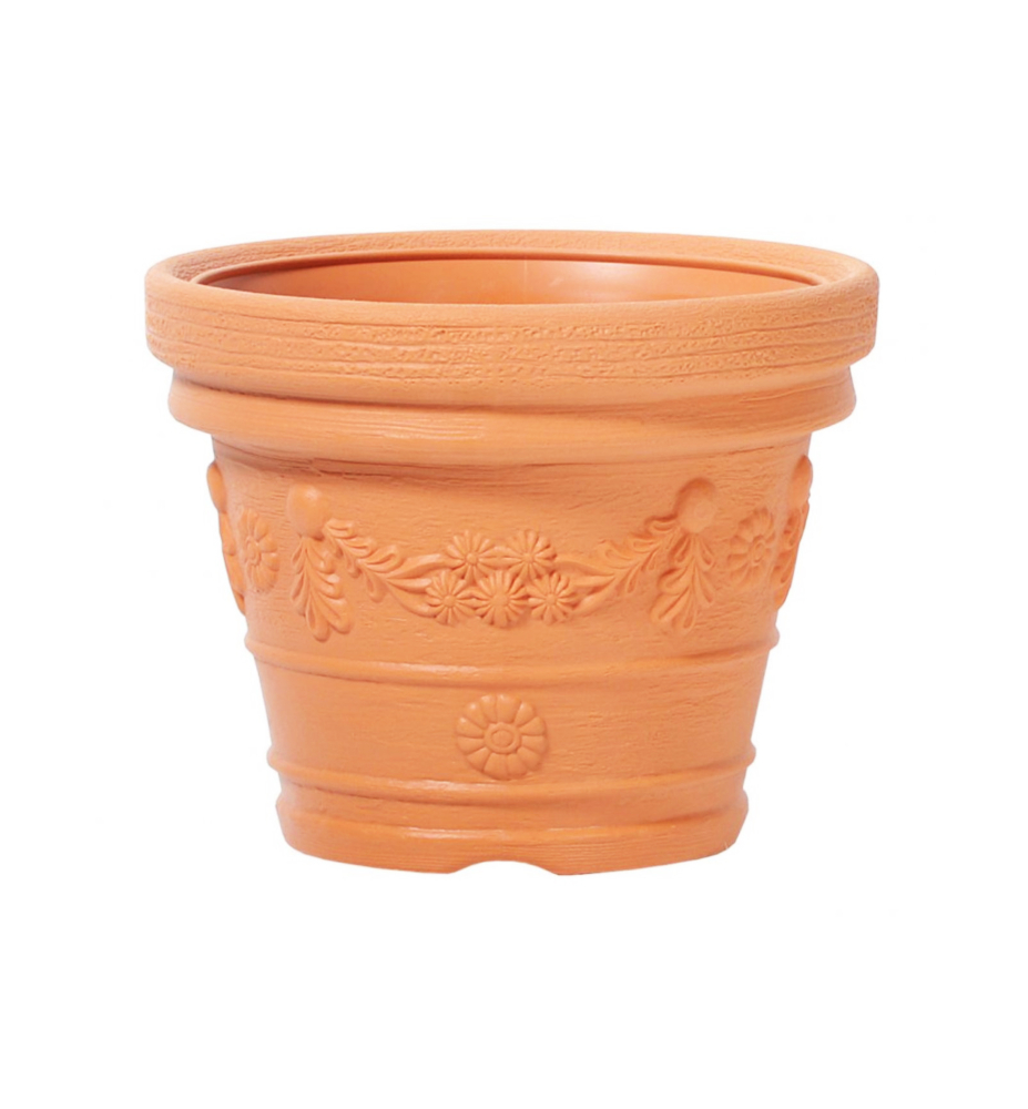 Obľúbený kvetináč terakotovej farby vhodný do interiéru aj exteriéru.