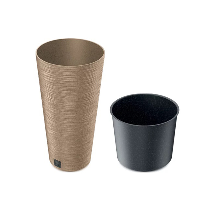 Charakteristika:Klasický okrúhly kvetináč so zaujímavou, pruhovanou štruktúrou, ktorá kolekcii Furu dodáva eleganciu. Kvetináče sú dostatočne veľké, aby sa prispôsobili individuálnym potrebám užívateľov. Obsahuje plastový vklad na vysadenie rastliny.