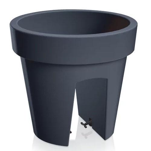 Plastový okrúhly kvetináč s upraveným stredom na zábradlie.