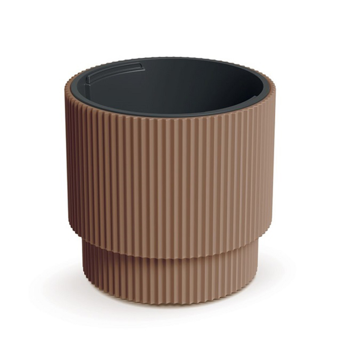 Charakteristika: Milly je cylindrický kvetináč, ktorý má v hornej časti širší priemer a v spodnej časti je užší, čo mu dodáva ľahký a elegantný vzhľad. Vďaka tomuto tvaru sa obal perfektne hodí k rôznym druhom rastlín v moderných interiéroch a terasových či záhradných aranžmánoch. Obal má pruhovaný povrch a tlmené farby. Je vyrobený z kvalitného plastu, ktorý poskytuje odolnosť voči mrazu, vysokým teplotám a UV žiareniu. Je vybavený vložkou, takže celý obal nie je potrebné napĺňať substrátom pre rastliny. Vložka sa dá ľahko vybrať vďaka rukovätiam, aby ste získali prístup do vnútra obalu.