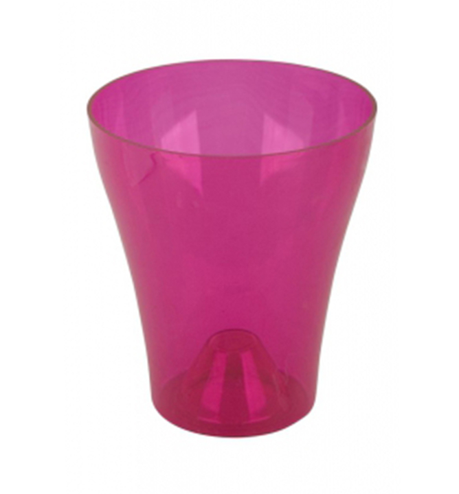 Priehľadný plastový kvetináč na orchideu s vysokým leskom v krásnej cyklaménovej farbe.