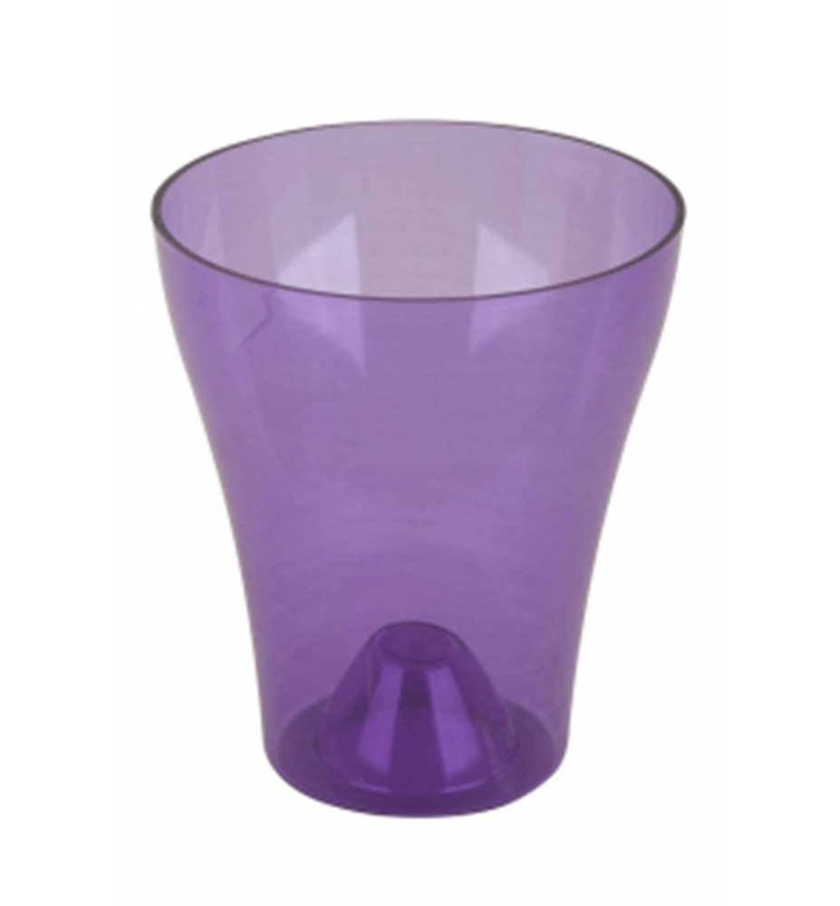 Priehľadný plastový kvetináč na orchideu s vysokým leskom v modernej fialovej farbe.