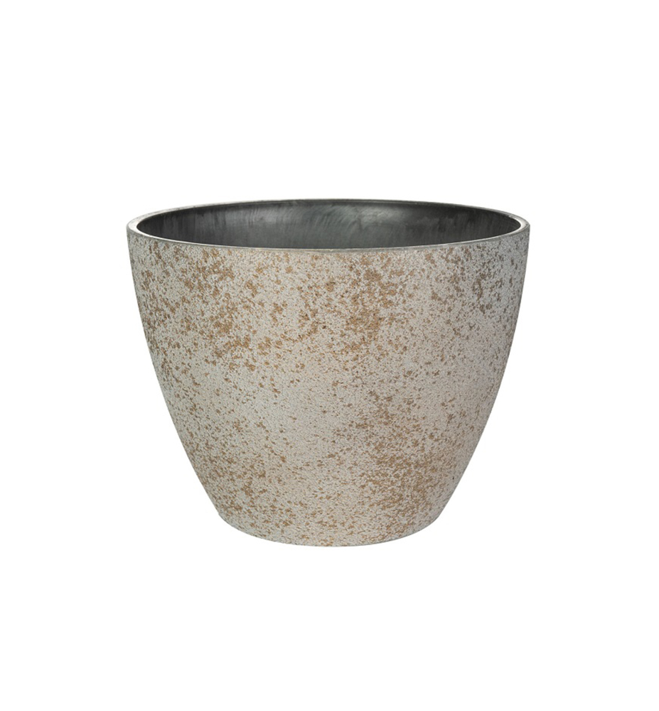 Charakteristika: Kvetináč Nova Concrete je vyrobený z 50 % recyklovaného plastu a 50 % prášku z prírodného kameňa. Jedná sa o jedinečný a udržateľný mix materiálov. Kvetináč je nerozbitný, odolný voči poveternostným vplyvom. Vyniká svojím jednoduchým, okrúhlym tvarom a krásna zlatá farba na obale premení vašu záhradu na pekné miesto plné štýlu a charakteru. Je vhodný i do exteriéru aj do interiéru.