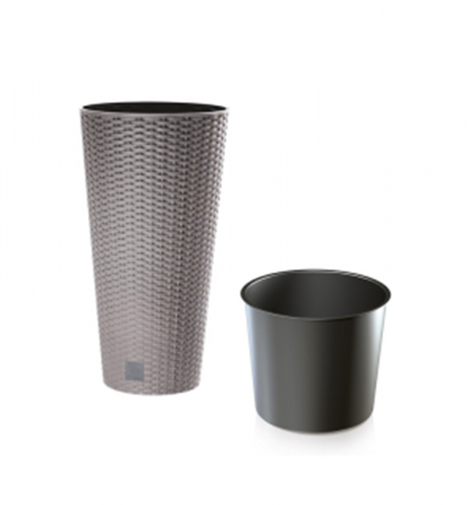 Charakteristika: Vysoký okrúhly kvetináč Rato Ratan moderného dizajnu, svojimi rozmermi je vhodný na vyplnenie zeleňou na terasách, vstupoch do domu a chodbách interiéru. Set obsahuje aj vnútornú vložku na vysadenie. Je vyrobený z mimoriadne odolného plastu. Vzor verne imituje prírodný ratanový výplet. Pôsobí veľmi exkluzívne.