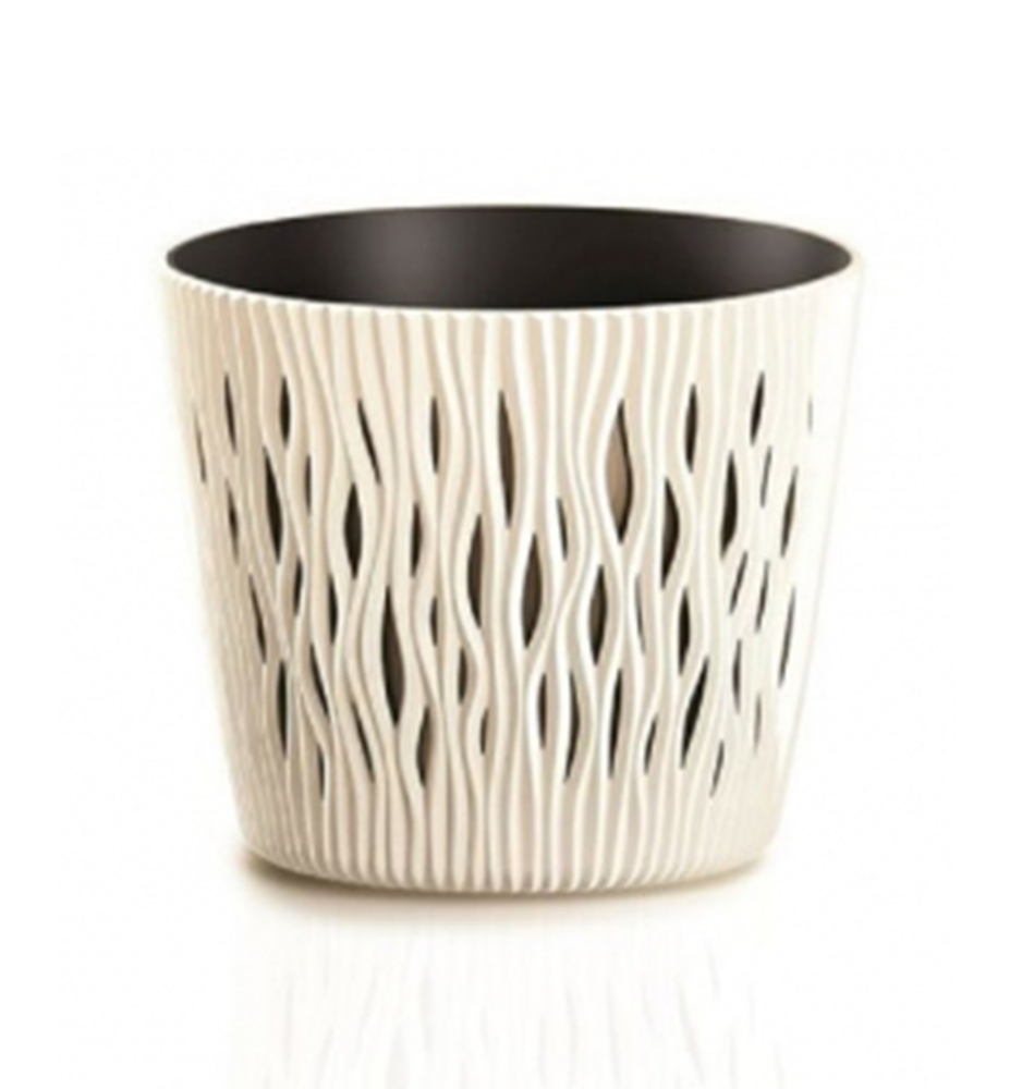 Charakteristika: Kvetináč SANDY ROUND svojim dizajnom nápadito pripomína jemné pieskové vlny. Dekoratívny vzhľad kvetináča podčiarkujú jeho efektívne zvislé otvory popri celoplošnom vlnitom vzore. Jeho súčasťou je vklad na vysadenie rastlín. Je vyrobený z vysoko kvalitného, ľahko umývateľného materiálu.