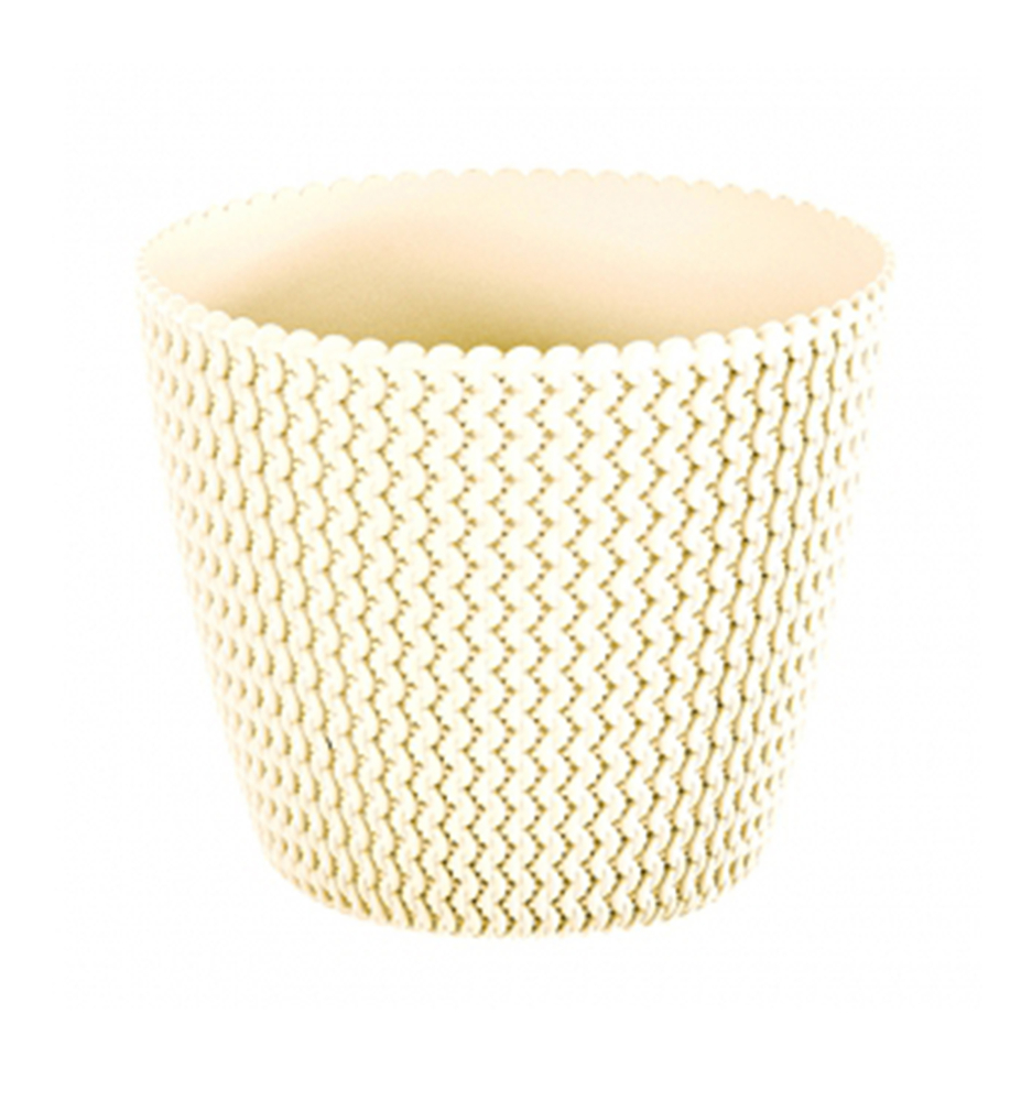 Moderný plastový kvetináč farby latté s jemnou vlnitou kresbou.