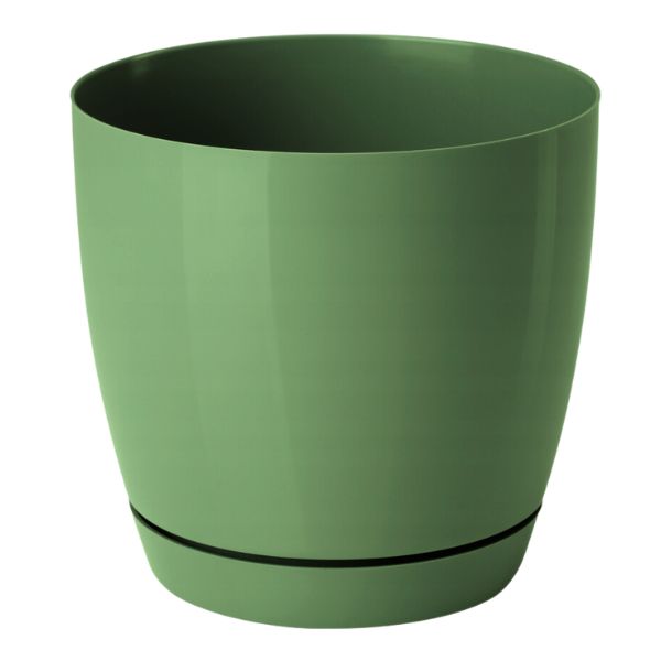 Elegantný plastový kvetináč s podmiskou v zelenej farbe.