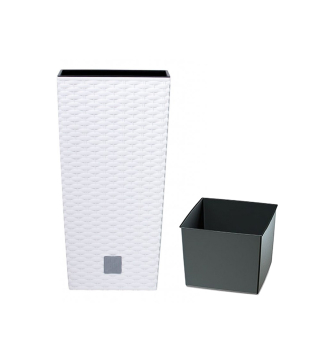 Moderný kvadrátový kvetináč s vnútornou vložkou pre vonkajšie aj vnútorné použitie.