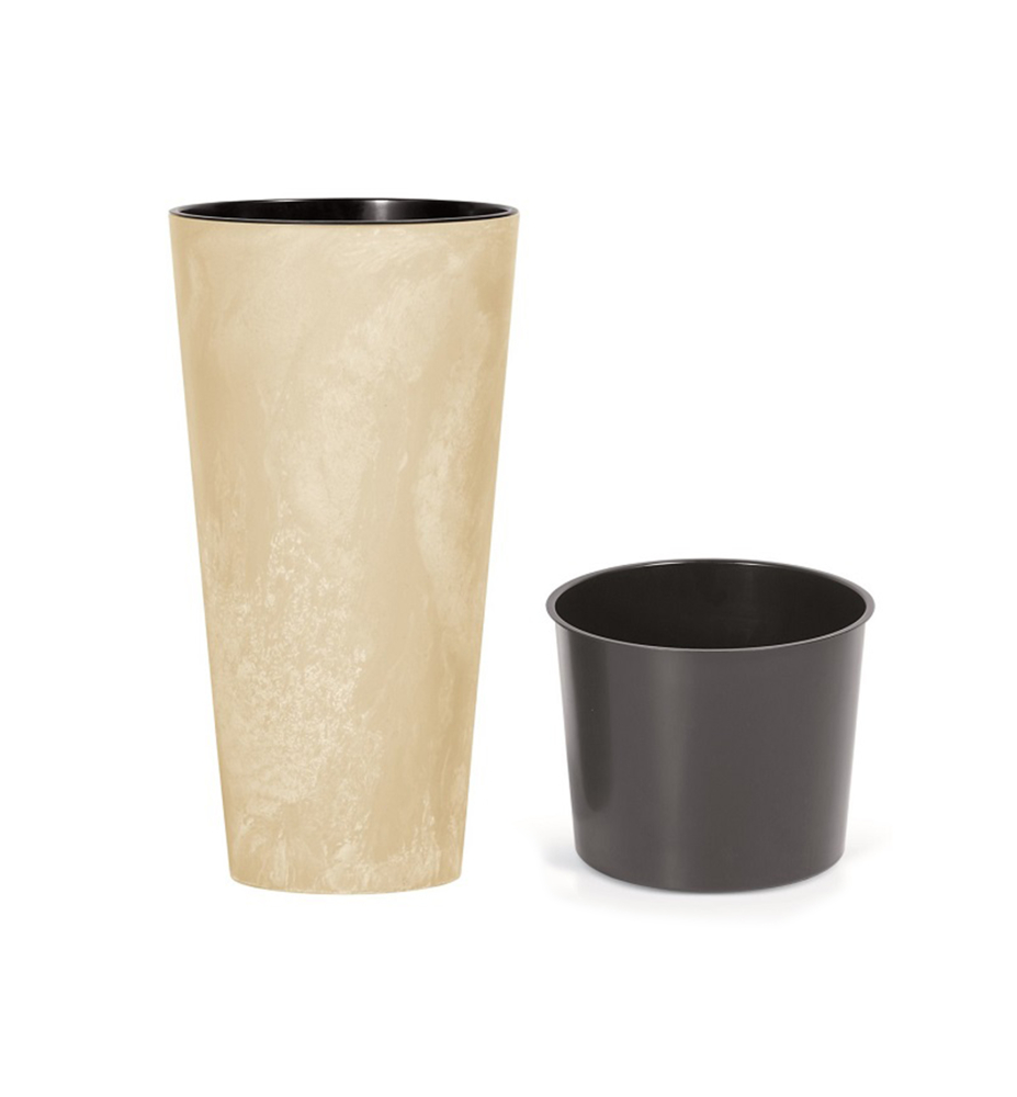 Charakteristika: Moderný úzky kvetináč Tubus Slim Effect v pieskovej farbe s betónovým efektom je krásnym a jednoduchým doplnkom do Vášho domova. V 1/3 nádoby je vložená plastová pevná vložka na vysadenie rastlinami. Ľahko odnímateľná pri sadení. Kvetináč je vhodný aj do interiéru a do zimných záhrad či ku dverám, na terasy, recepcie, vytvorenie zelenej bariéry v reštauráciách, hoteloch, obchodných centrách.