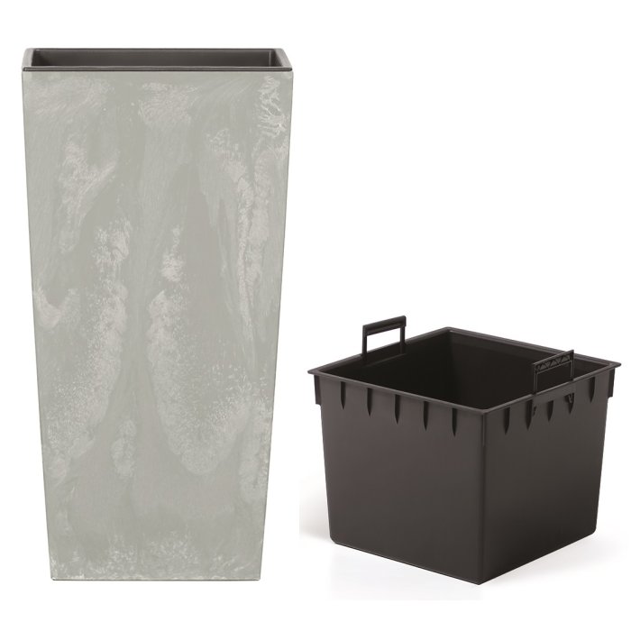 Charakteristika: Moderný vysoký kvetináč kvadrátového tvaru, Urbi Square Effect je vyrobený z vysoko kvalitného plastu s efektom betónu. V 1/3 nádoby je vložená plastová pevná vložka na vysadenie rastlinami. Ľahko odnímateľná pri sadení. Kvetináč je vhodný aj do interiéru a do zimných záhrad či ku dverám, na terasy, recepcie, vytvorenie zelenej bariéry v reštauráciách, hoteloch, obchodných centrách.
