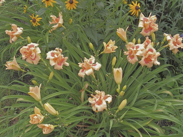 Nenáročná ľaliovka s kvetmi v harmonicky zladených odtieňoch oranžovej a ružovej.