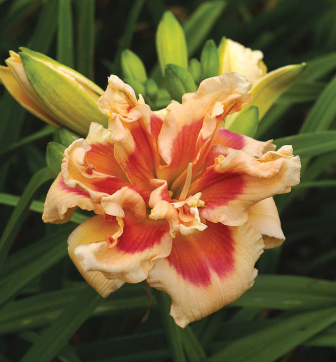 Charakteristika: Až 12 cm veľké kvety odrody ´FORTY SECOND STREET´ kombinujú jemnú broskyňovooranžovú farbu so sýtymi malinovoružovými odtieňmi. Dekoratívne usporiadané okvetné lístky jej dodávajú nezameniteľný vzhľad a pridávajú na atraktivite. Listy sú úzke, sviežej zelenej farby a rastú ako bohatý trs, ktorý zdobí záhony až do neskorej jesene. Jeden kvet kvitne maximálne 24 hodín, preto do vázy vyberáme stonky s viacerými pukmi. Ľaliovky sa vysádzajú najmä do zmiešaných trvalkových záhonov alebo do skupinových výsadieb.