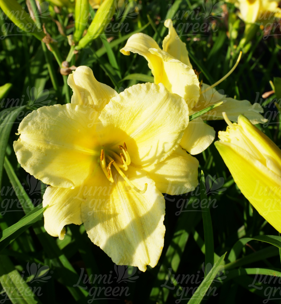 Žiarivá remontantná ľaliovka s veľkými voňavými žltými kvetmi.