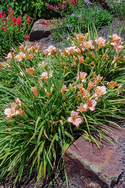 Charakteristika: Ľaliovka ´ON AND ON´ je výnimočne bohato kvitnúci kultivar, ktorý dokáže vyprodukovať až 500 kvetov za jednu sezónu. Patrí medzi nižšie druhy, dosahuje výšku približne 45 cm. Kvety majú pastelovoružové sfarbenie doplnené výrazným oranžovým hrdlom kvetu. Šíria okolo seba jemnú vôňu. Jeden kvet kvitne maximálne 24 hodín, preto do vázy vyberáme stonky s viacerými pukmi. Pevné stonky s kvetmi rastú z kompaktného trsu úzkych zelených listov. Ľaliovky sa vysádzajú najmä do zmiešaných trvalkových záhonov alebo do skupinových výsadieb.