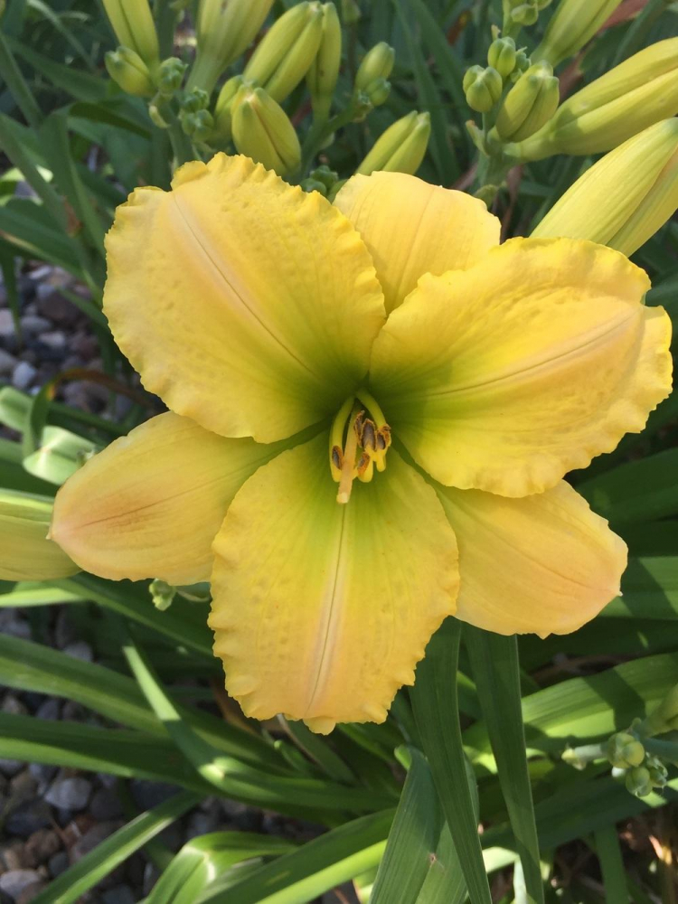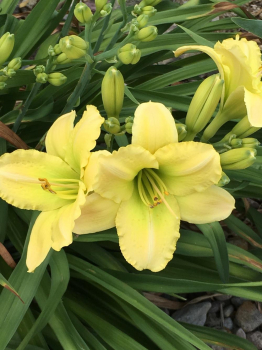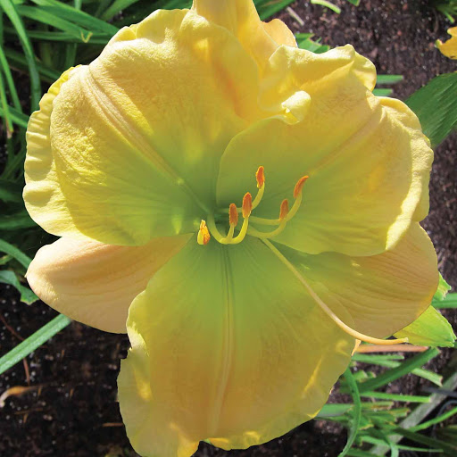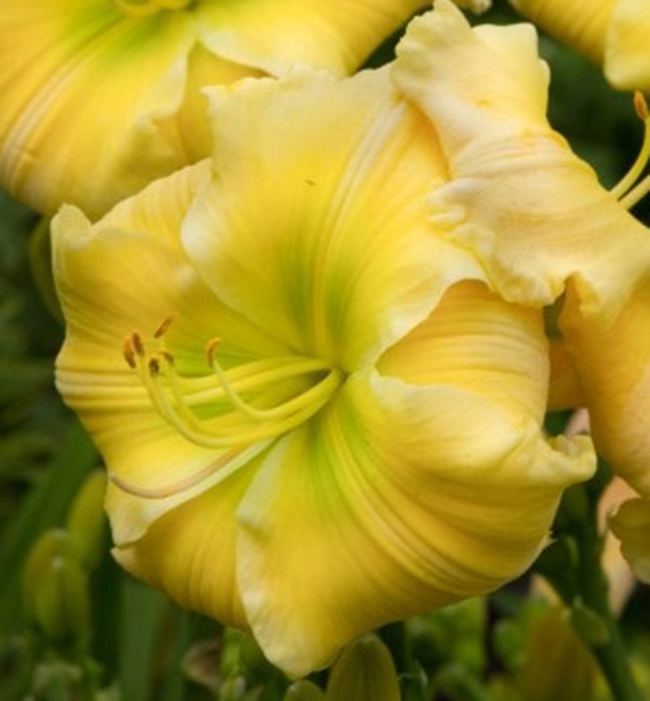Žiarivá remontantná ľaliovka s veľkými voňavými žltými kvetmi.