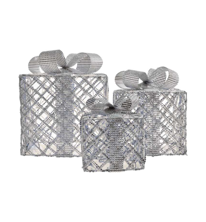 LED DARČEKY, 3 veľkosti, 72 LED, vnútorné, studená biela, časovač, 25/20/15 cm