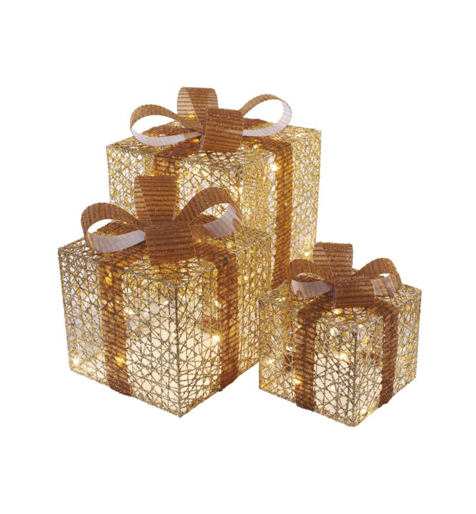 Charakteristika: Svetelná dekorácia- darčeky v troch veľkostiach a v teplej bielej farbe je vhodná na výzdobu interiéru. Táto krásna vianočná dekorácia vyčarí tú správnu sviatočnú atmosféru.