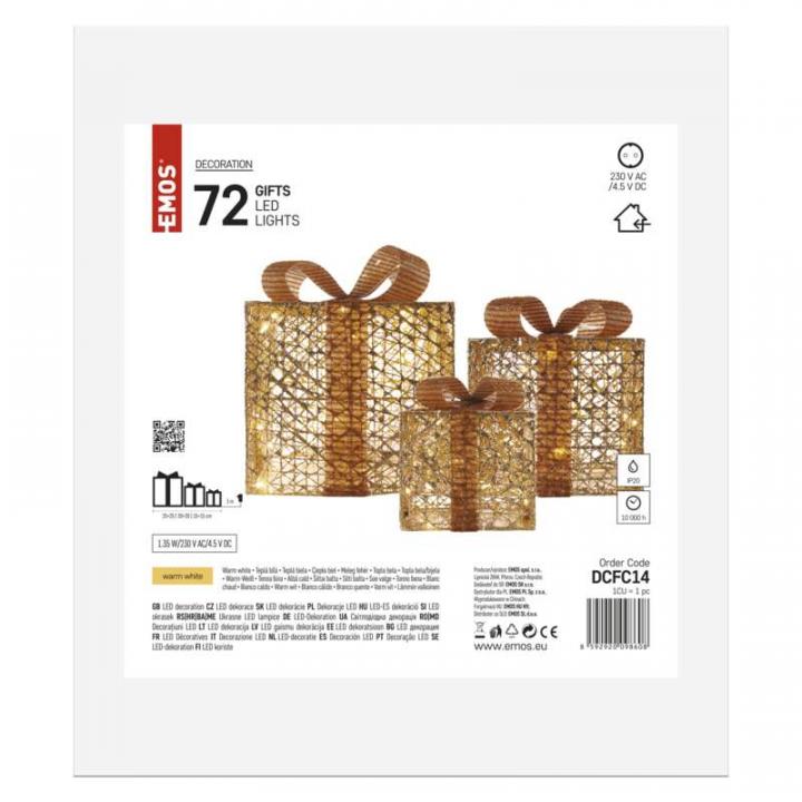 - LED DARČEKY, 3 veľkosti, 72 LED, vnútorné, teplá biela, 25/20/15 cm
