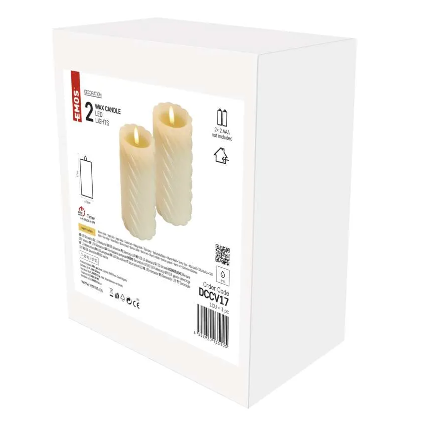 - LED dekorácia - 2x VOSKOVÁ SVIEČKA, 17 cm, vnútorná, teplá biela, 2 ks, časovač
