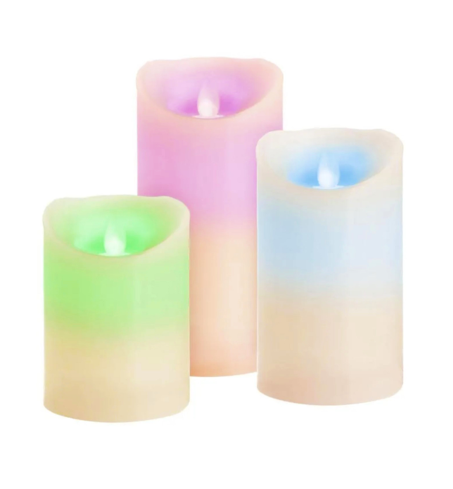 LED dekorácia - 3x VOSKOVÁ SVIEČKA, 3xAAA, pohyblivý plameň, 100-125-150 mm