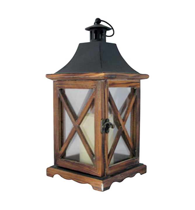 Drevený lampáš s LED svetlom na vnútorné použitie.