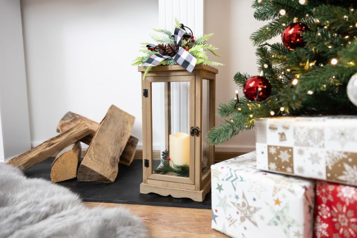 Drevený lampáš s LED svetlom na vnútorné použitie.