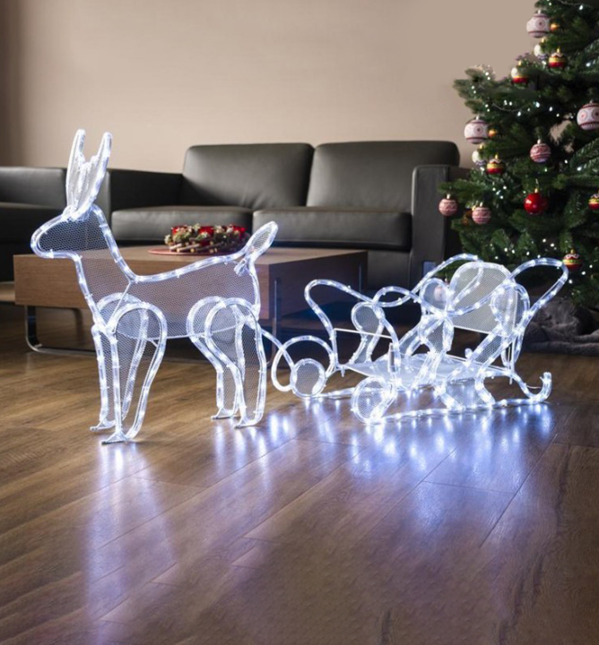 Charakteristika: Sob - významný symbol Vianoc a zimného času. Svetelná dekorácia v tvare soba so saňami rozžiari nielen vonkajšie priestory, ale hlavne srdce všetkých blízkych a priateľov.