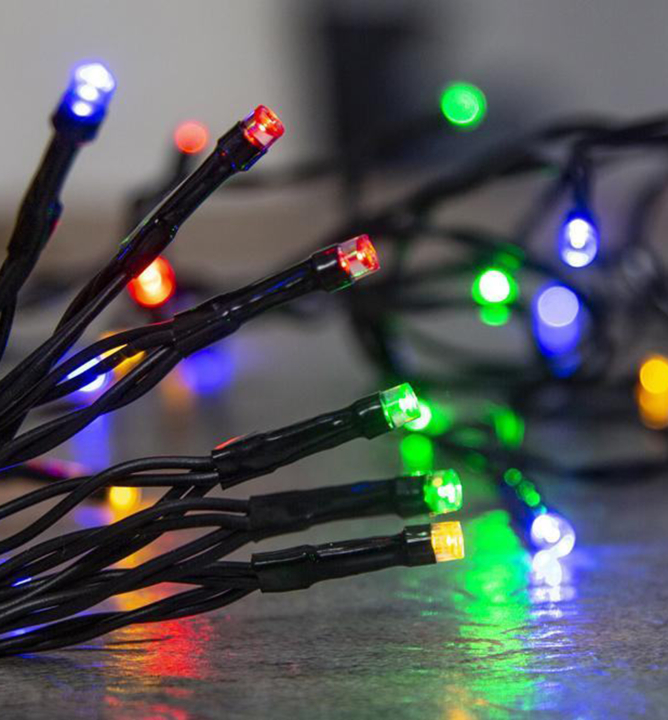 Farebná vianočná LED reťaz na vonkajšie použitie.